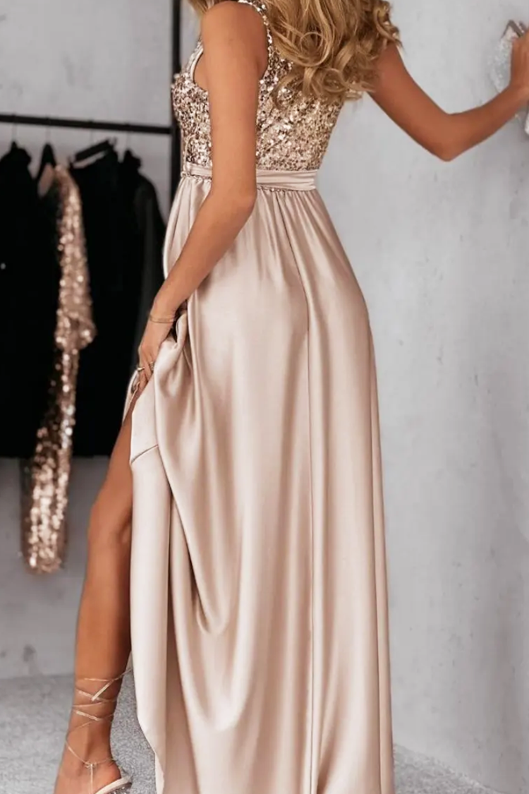 - A tökéletesen elegáns megjelenésért bízd rá magad erre a vonzó, csillogó dizájnú hosszú ruhára.