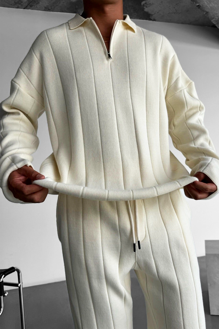 - Kényelmes, kétrészes férfi szett, amely egy felsöből és egy nadrágból áll.