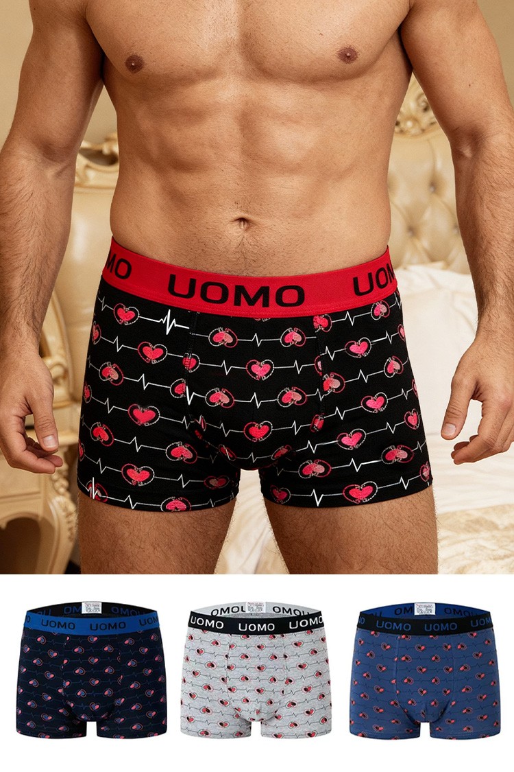- Négy darabos férfi boxeralsó szett szívmintával és feliratos gumiszalaggal, pamutból, légáteresztő anyagból.