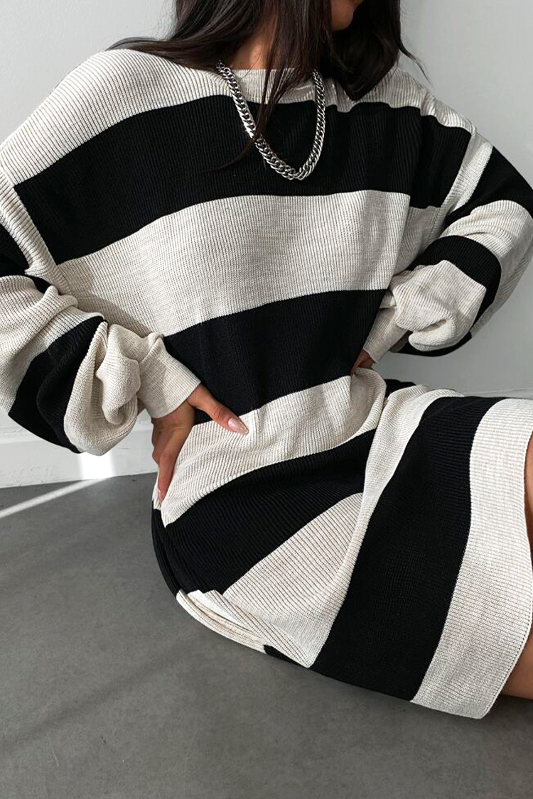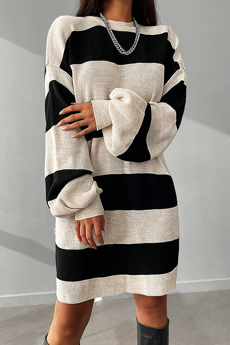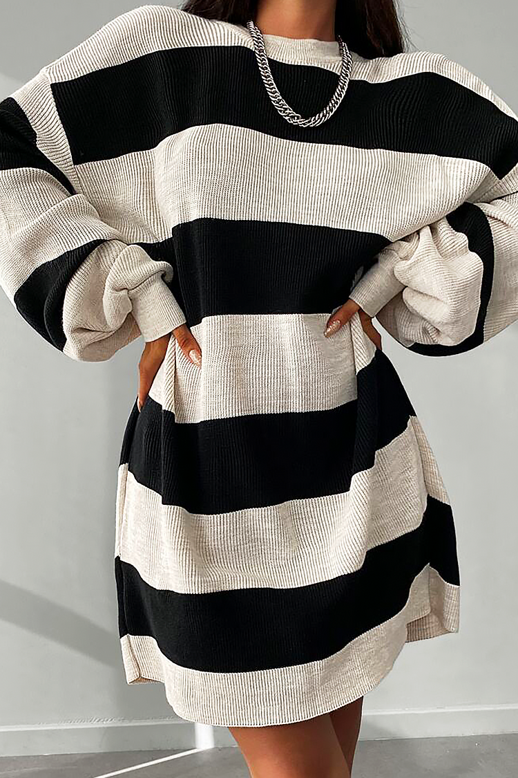 - Stílusos megjelenésért válaszd ezt a rövid, csíkos mintás ruhát.