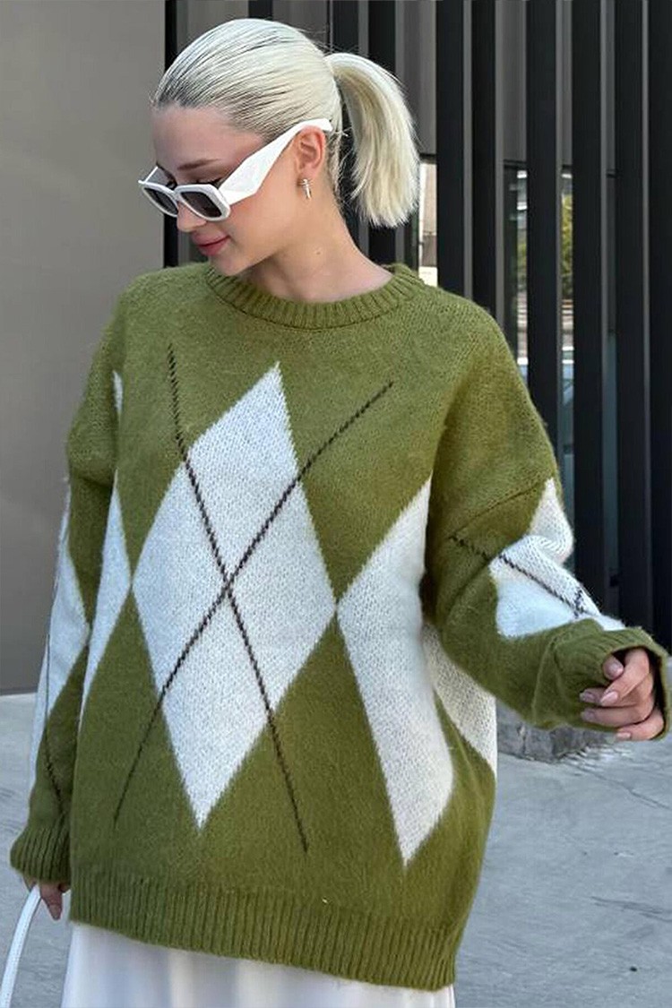 - Látványos pulóver divatos dizájnnal, amely alkalmas mindennapi megjelenésre.