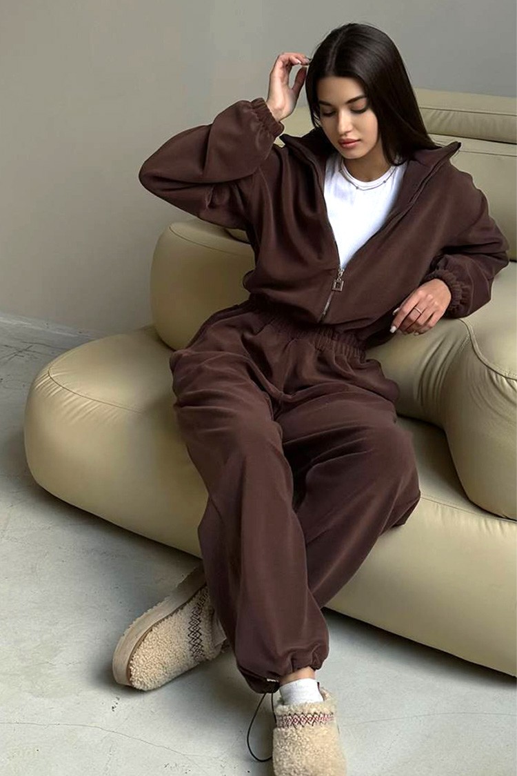 - A kardigán laza szabású, kapucnival és elöl cipzárral záródik.