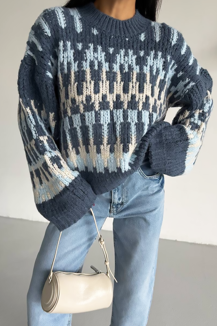 - Praktikus pulóver mutatós mintával, amely alkalmas a mindennapi életre.