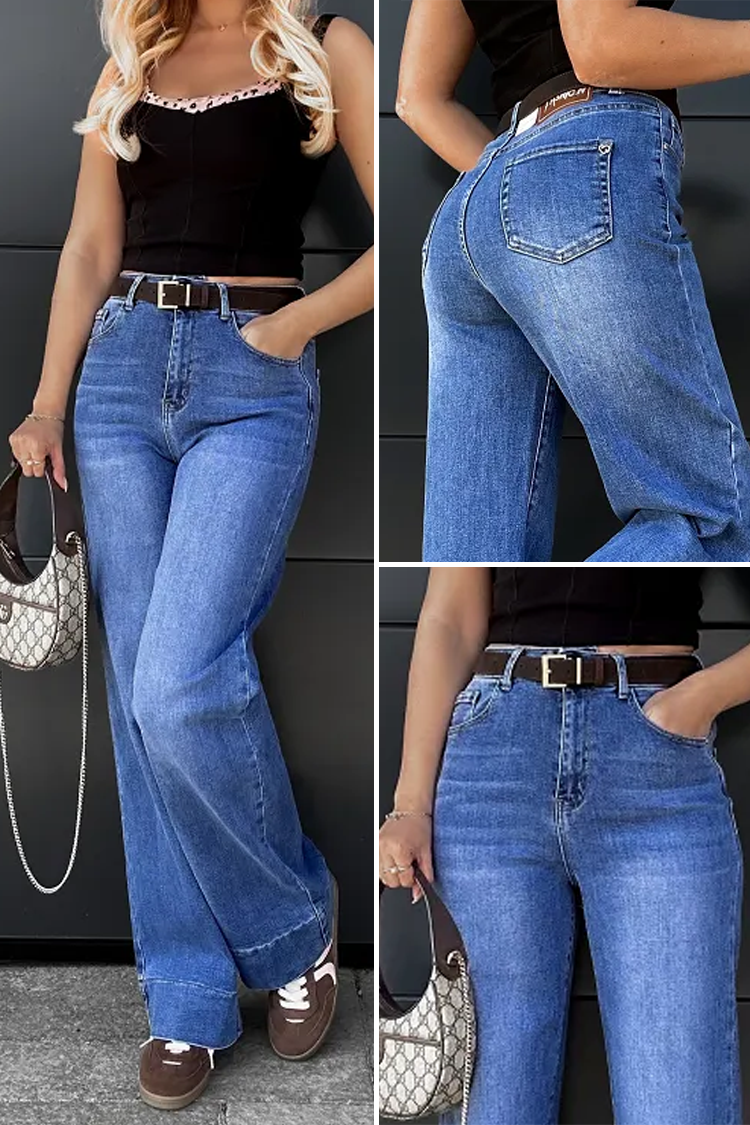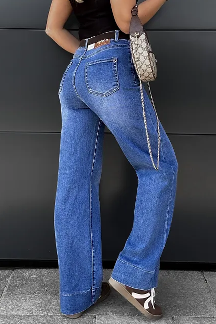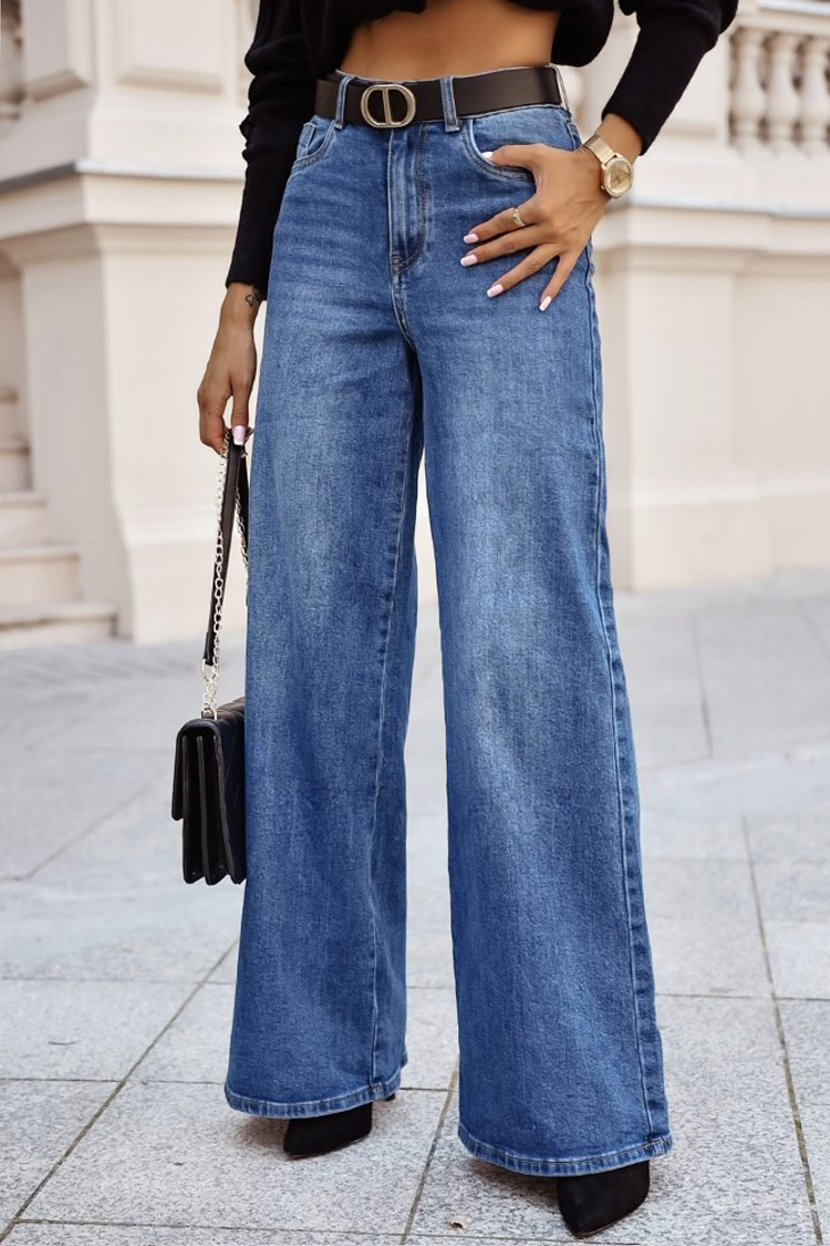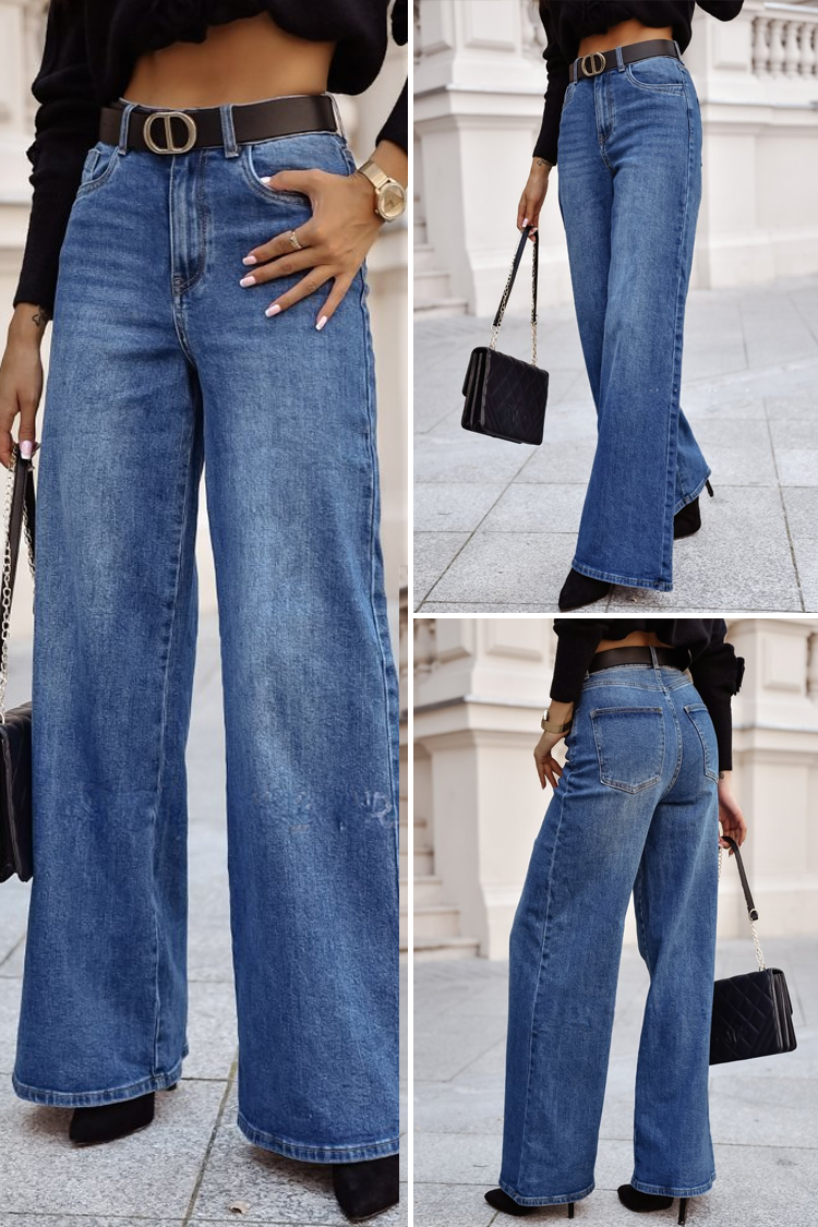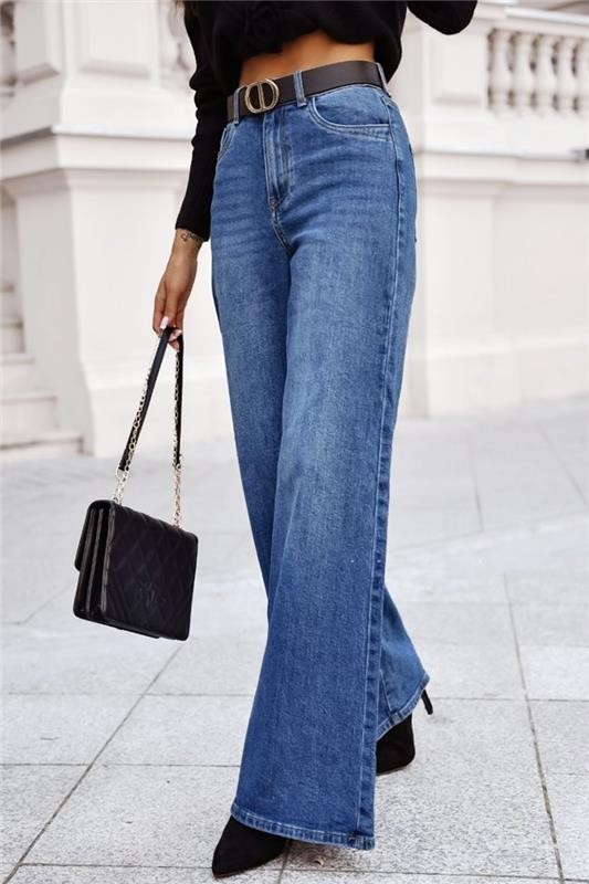 - A modell magas derekú, széles szárú és divatos fazonú.