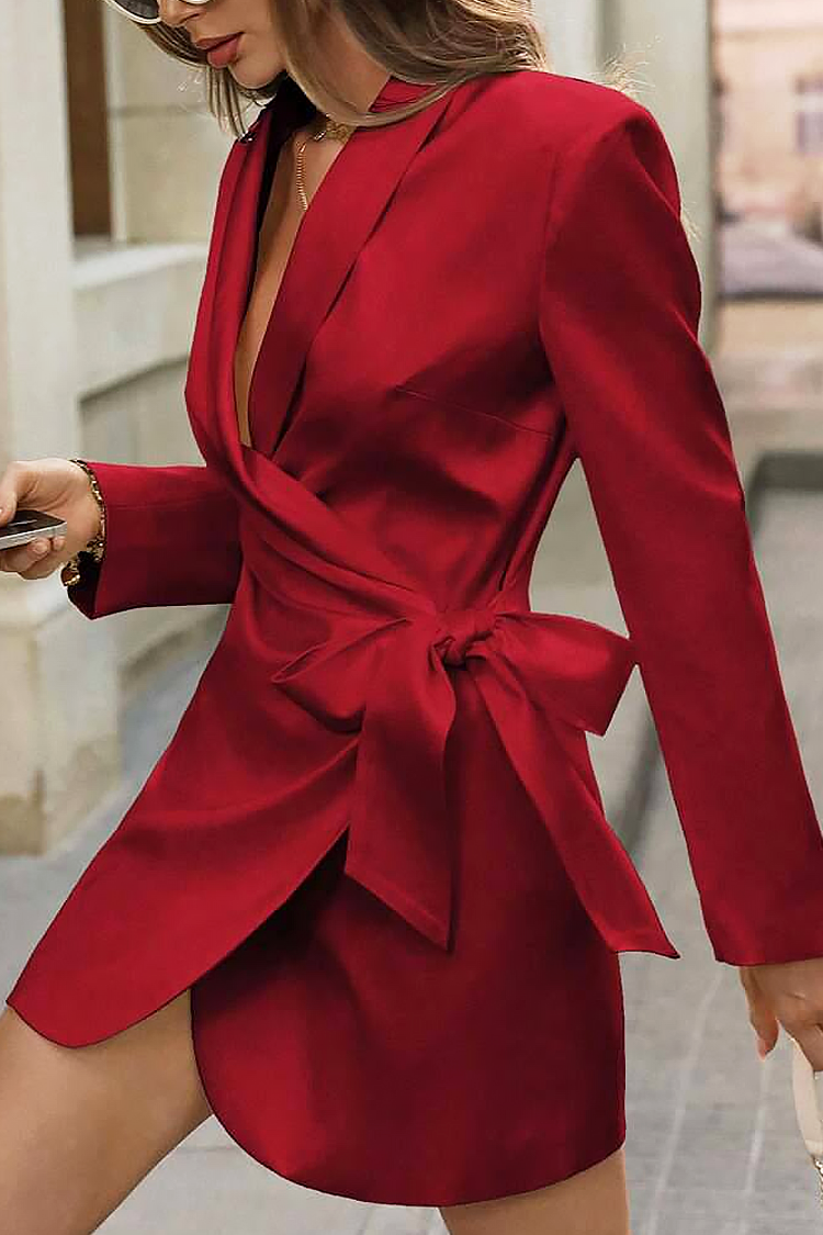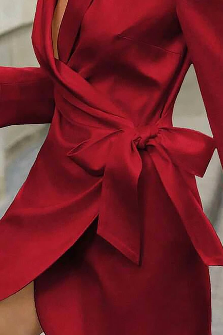 - A modell V-nyakkal és textil övvel rendelkezik, amely szalagként formázható a derekán.