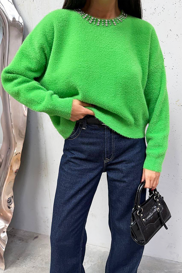 - Kényelmes szabással, hosszú ujjal és gyönyörű köves díszítéssel a nyakkivágás körül.