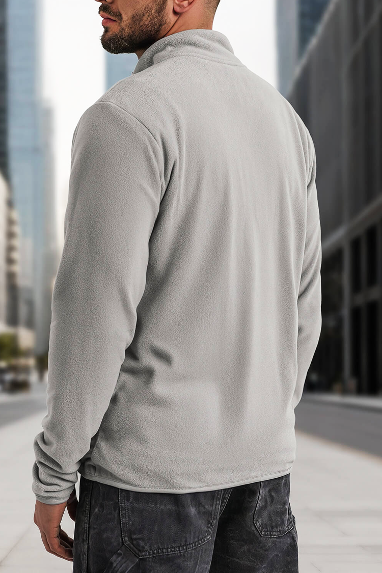 - Praktikus és kényelmes férfi pulóver szürke színű anyagból, mindennapi használatra, sportolásra vagy sétálásra.