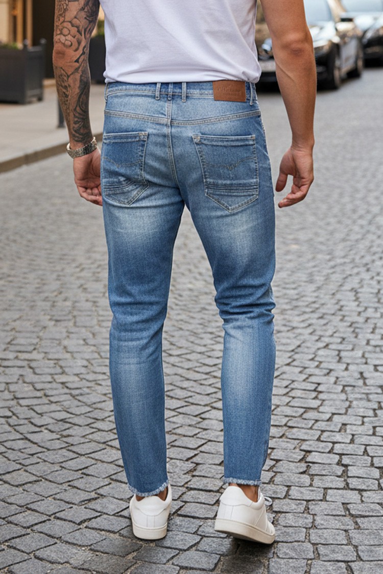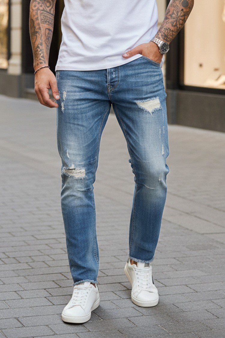 - Praktikus farmer dekoratív szakadásokkal és horzsolásokkal a száron, mindennapi használatra alkalmas.