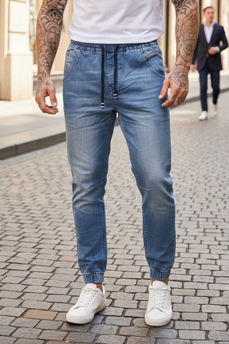 - Kényelmes farmer a száron, dekoratív koptatással, mindennapi használatra alkalmas.