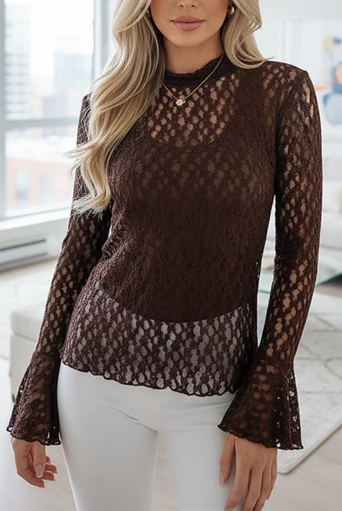 - Tökéletesen illeszkedik az alakhoz. A modell mutatós fazonnal, szexi átlátszó csipkével, elegáns nyakkivágással és letisztult hosszú ujjal rendelkezik.
