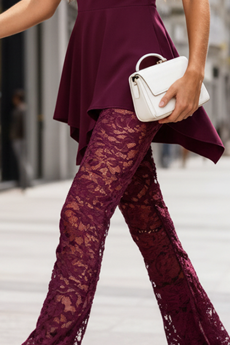 - A modell testhezálló szabással, elegáns felsőrésszel és szexi csipkés "trapéz" típusú szárral rendelkezik a lenyűgöző megjelenésért.