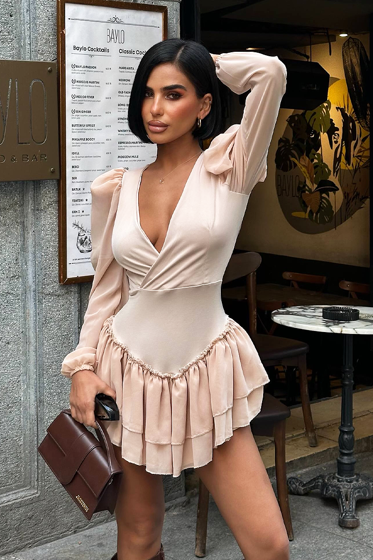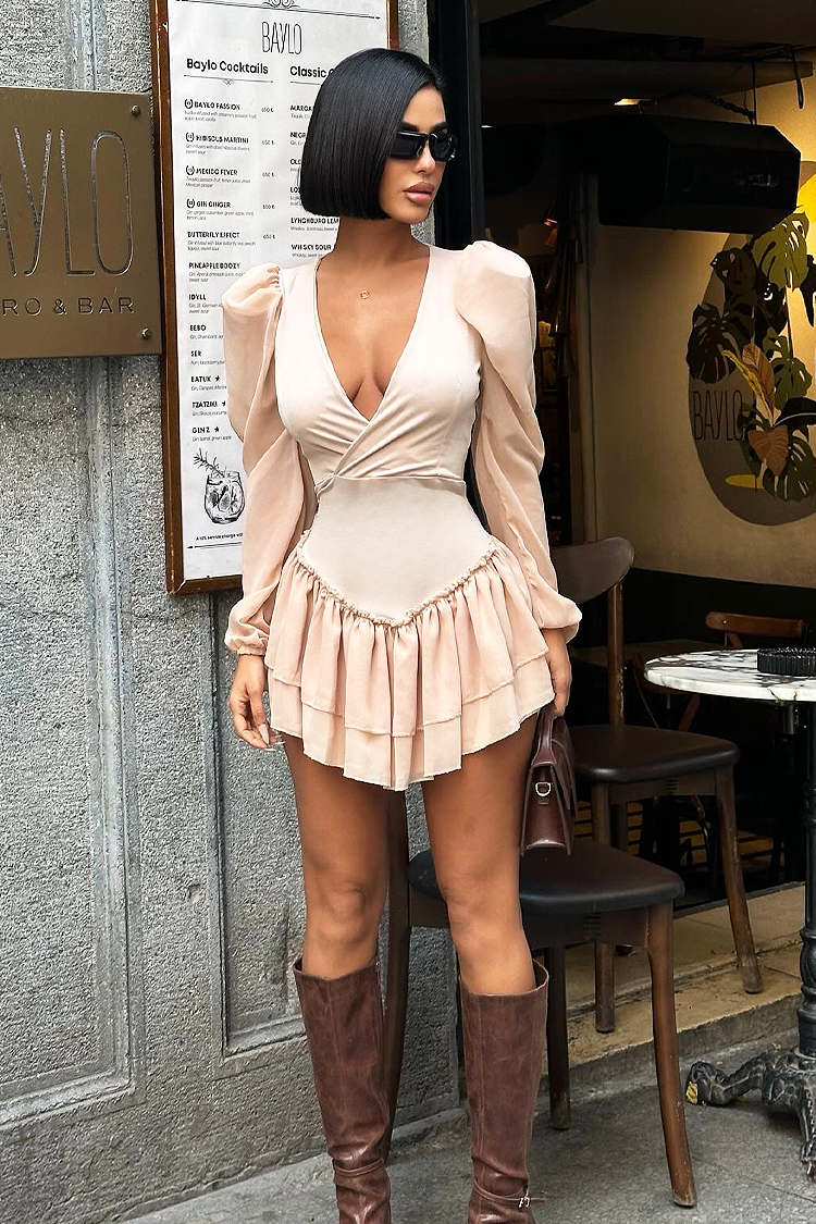 - A tökéletes megjelenésért válaszd ezt a rövid ruhát vonzó bézs dizájnnal.