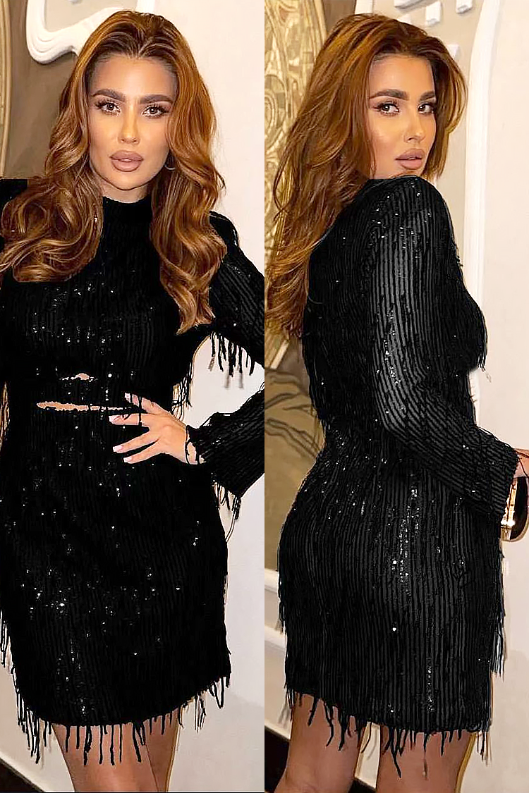 - Elegáns női kétrészes szett vonzó rojtokkal.