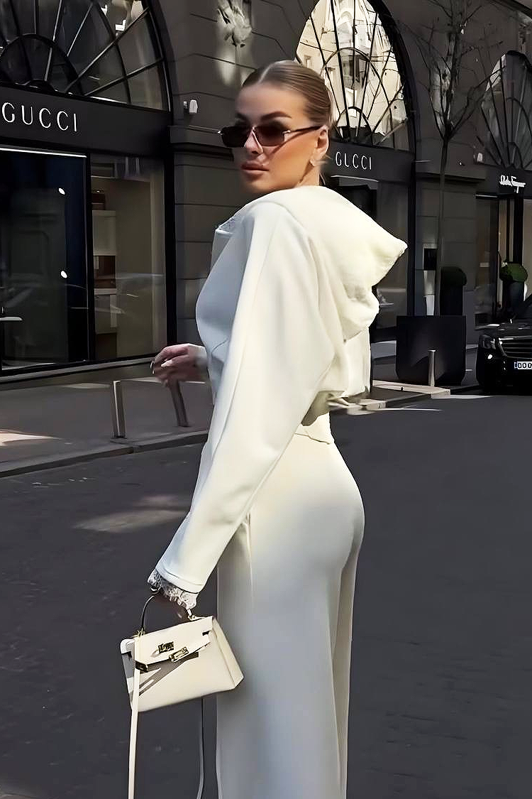 - A kardigán cipzáras és mutatós kapucnis, a nadrág pedig magas derekú, megkötős és széles szárú.