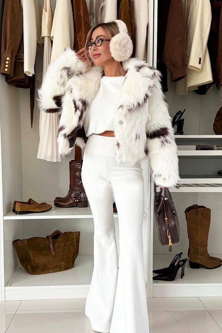 - Válaszd ezt a szörme kabátot vonzó dizájnnal, amely különböző megjelenésekhez illik.