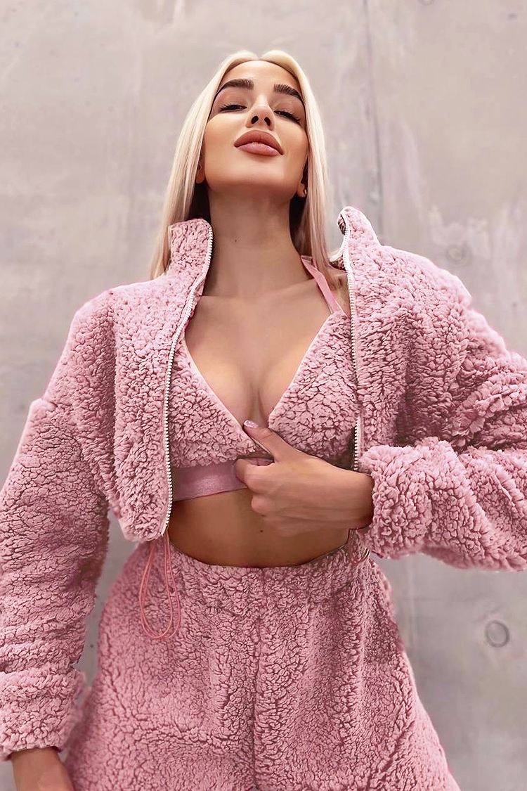 - A kardigán cipzáras és kapucnis, a nadrág kényelmes szabású, a melltartó pedig crop-top rövid hosszal.