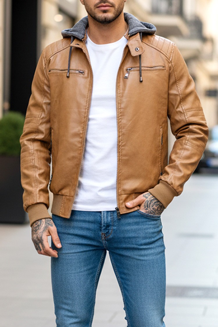 - Férfikabát, nem standard fazonnal, kötött kapucnival, mindennapi viseletre alkalmas.
