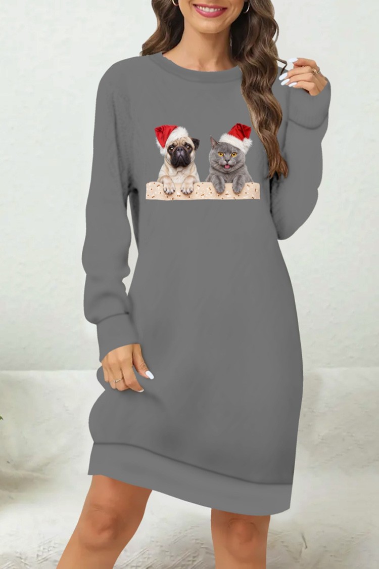 - A ruha kényelmes és laza szabású, hosszú ujjú és karácsonyi mintás.