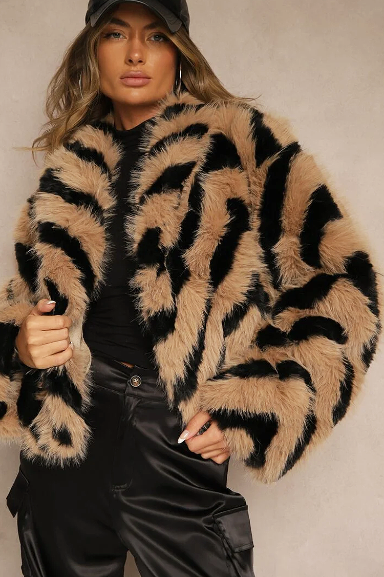 - A modell rövid fazonú és kényelmes szabású, minden alkatra illik, tigrismintával.