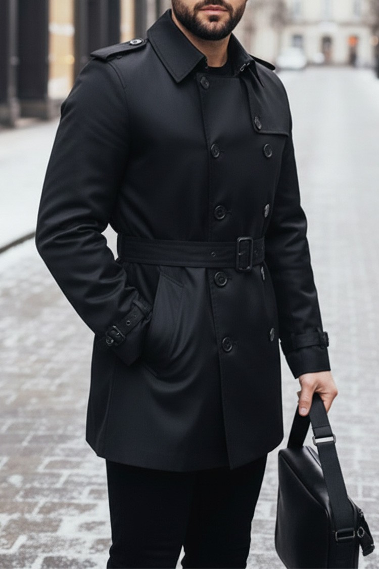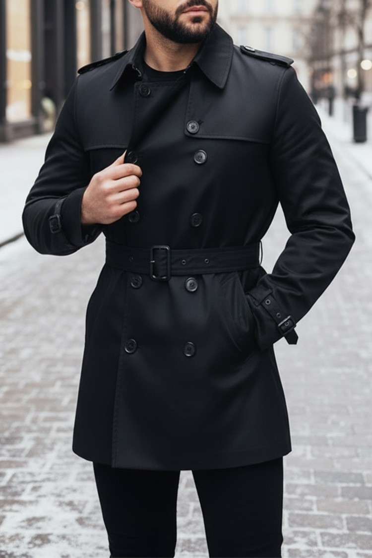 - A modell klasszikus, enyhén bő szabású, az elegáns vonalvezetést pedig tökéletesen kiegészíti a dupla soros gombolással.