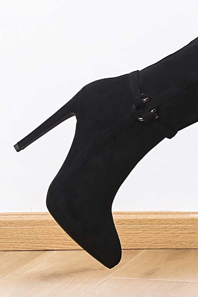 - Stílusos és divatos modell a fekete színű, öko velúrból készült női magas sarkú csizma.