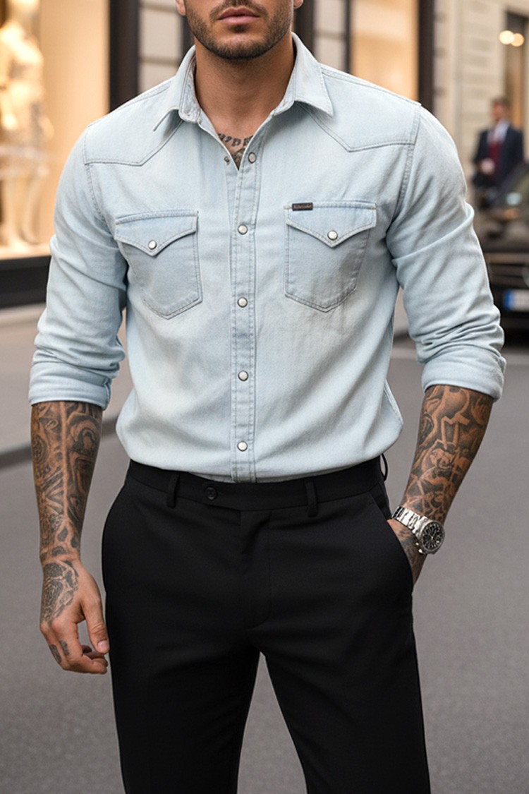 - Puha, pamut farmerből készült, laza szabású, minden alkathoz illik. A modell stílusos szabással rendelkezik, amely kiemeli az ing vonalát.