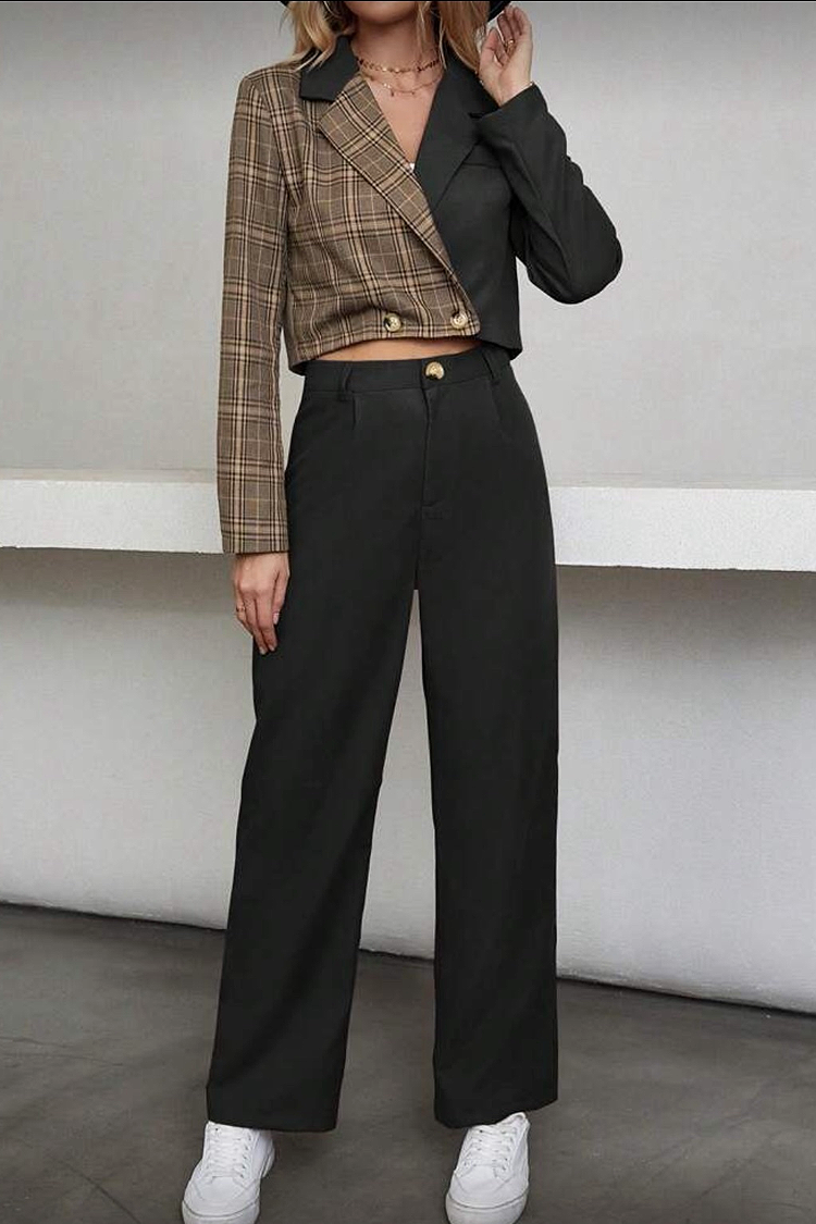 - A nadrág magas derekú és széles szárú, a kabátka pedig rövidített szabású és vonzó mintázatú.