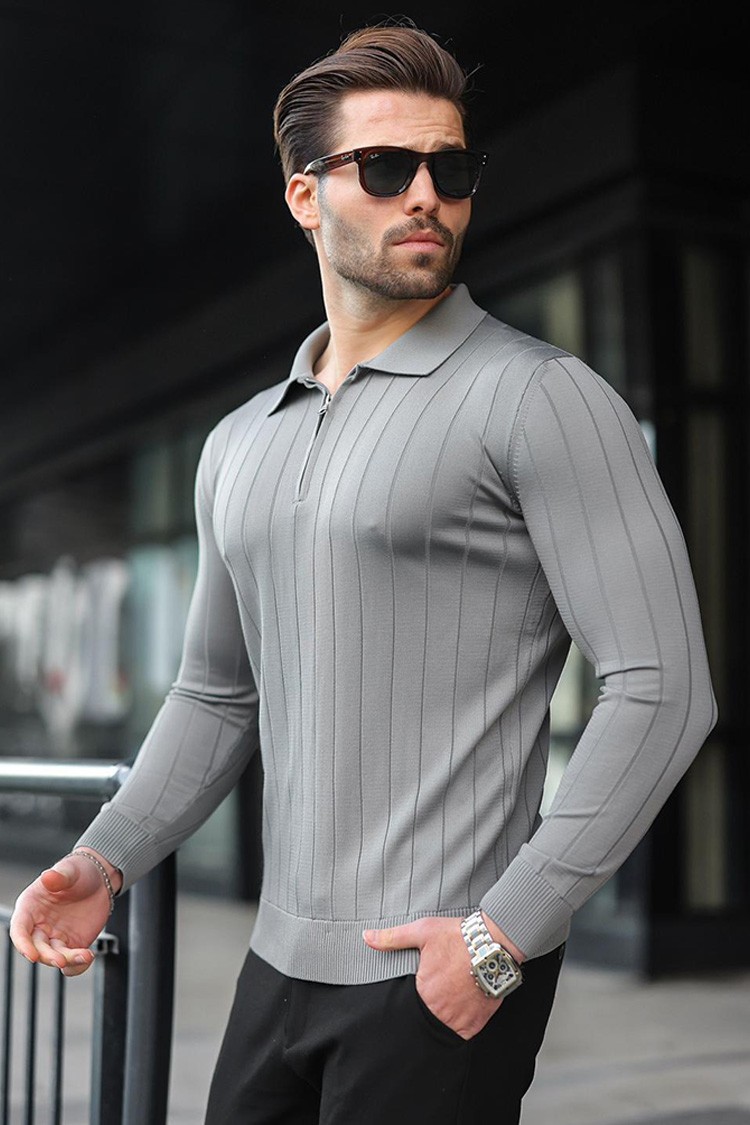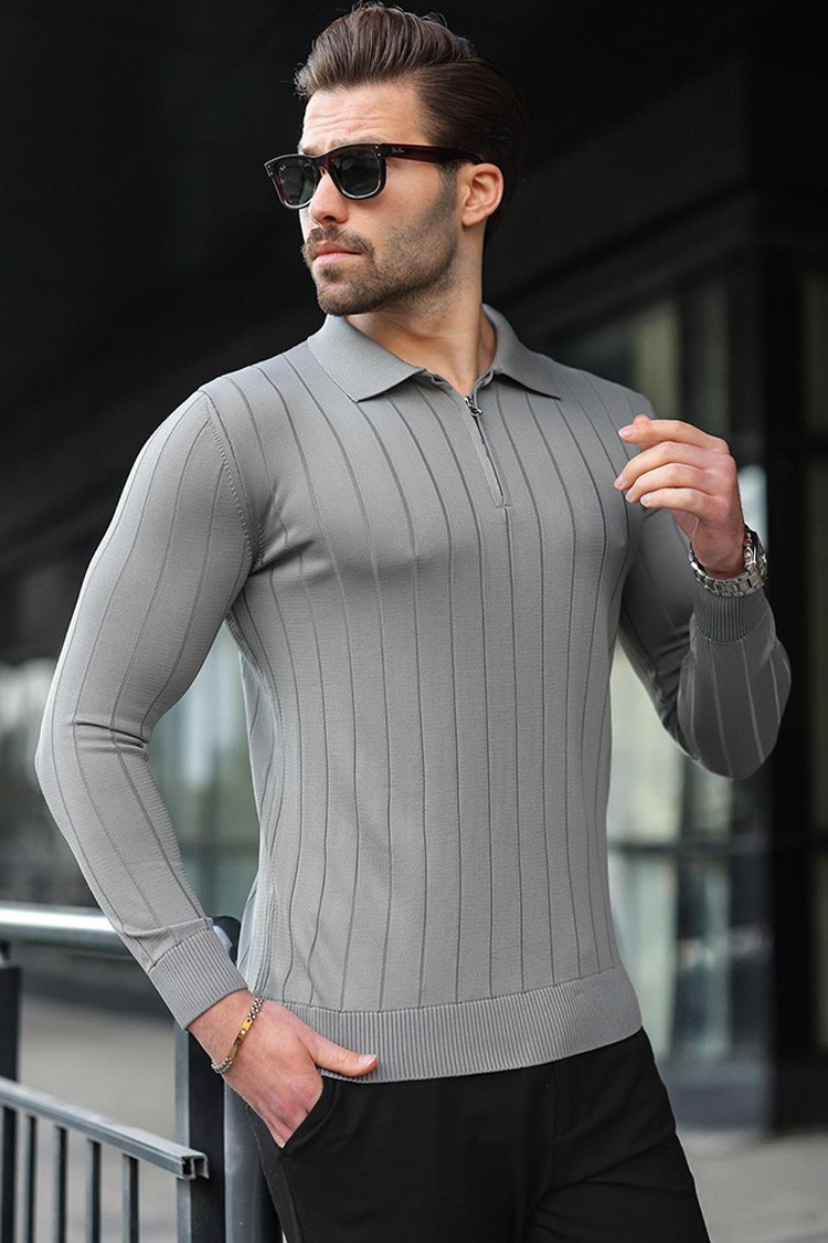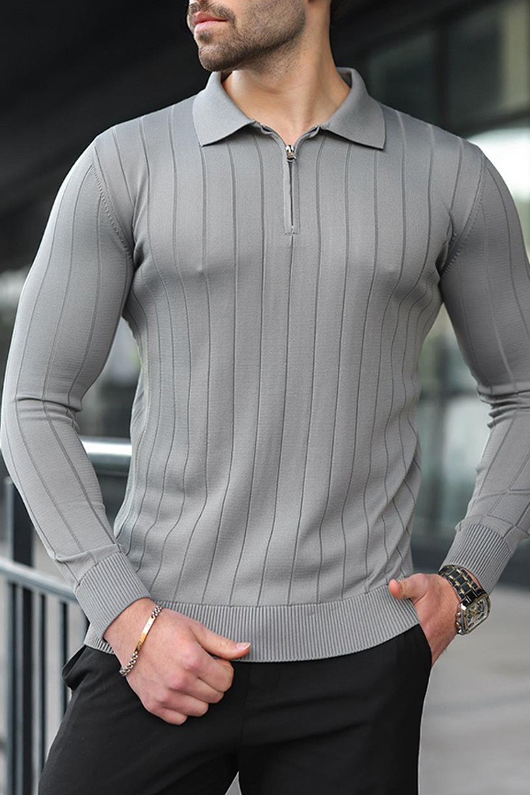 - Kényelmes és stílusos férfi felső cipzáras gallérral, egyszínben.