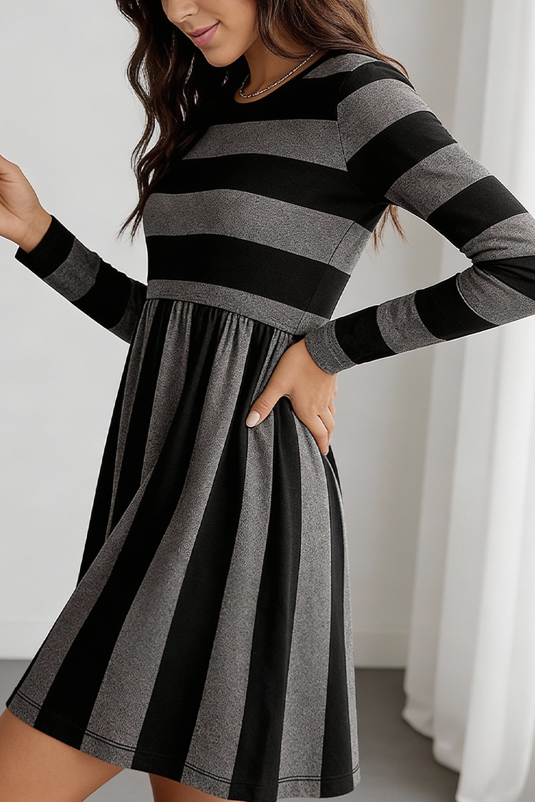 - Mindennapi megjelenéshez válaszd ezt a rövid, csíkos mintás ruhát.