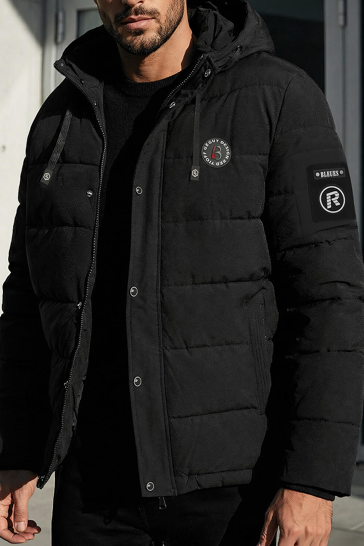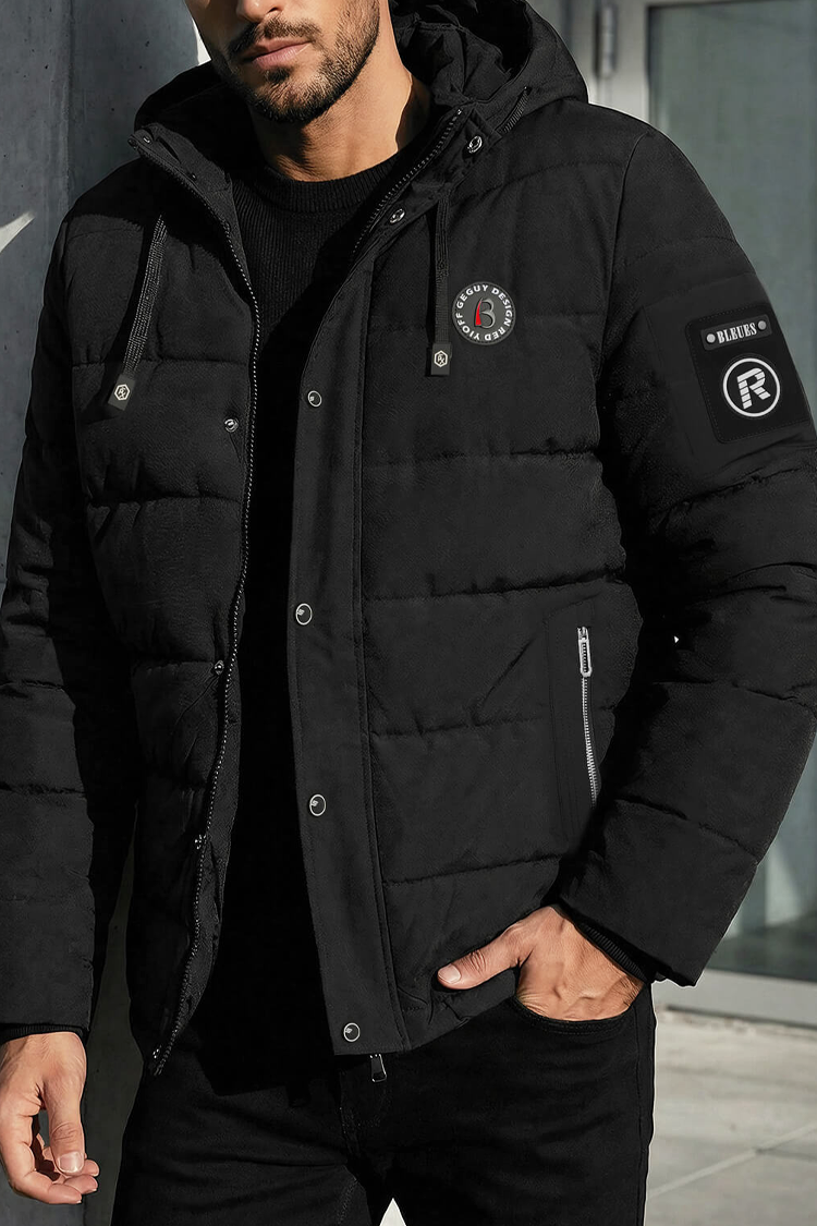 - Praktikus és meleg férfi téli dzseki zsebekkel, amely ötvözi a kényelmet és a modern városi dizájnt.
