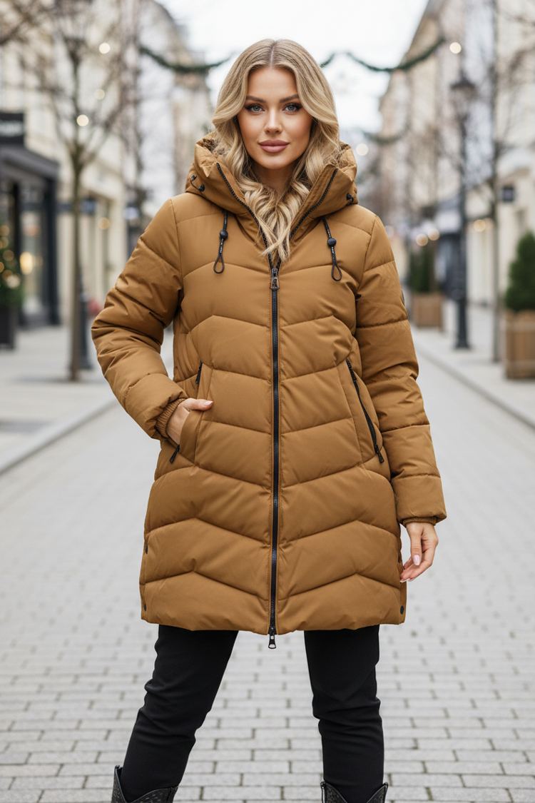- A modell steppelt mintával, fix kapucnival, megkötővel és oldalsó zsebekkel rendelkezik.