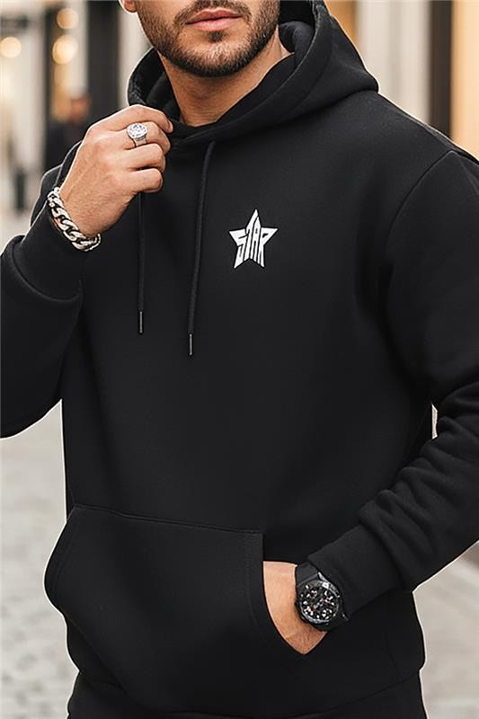 - Praktikus férfi pulóver fekete színben, amely különféle divatos kombinációkhoz illik.