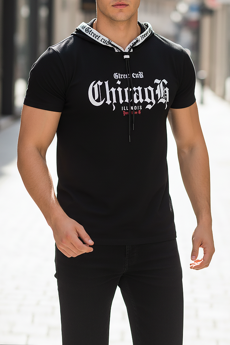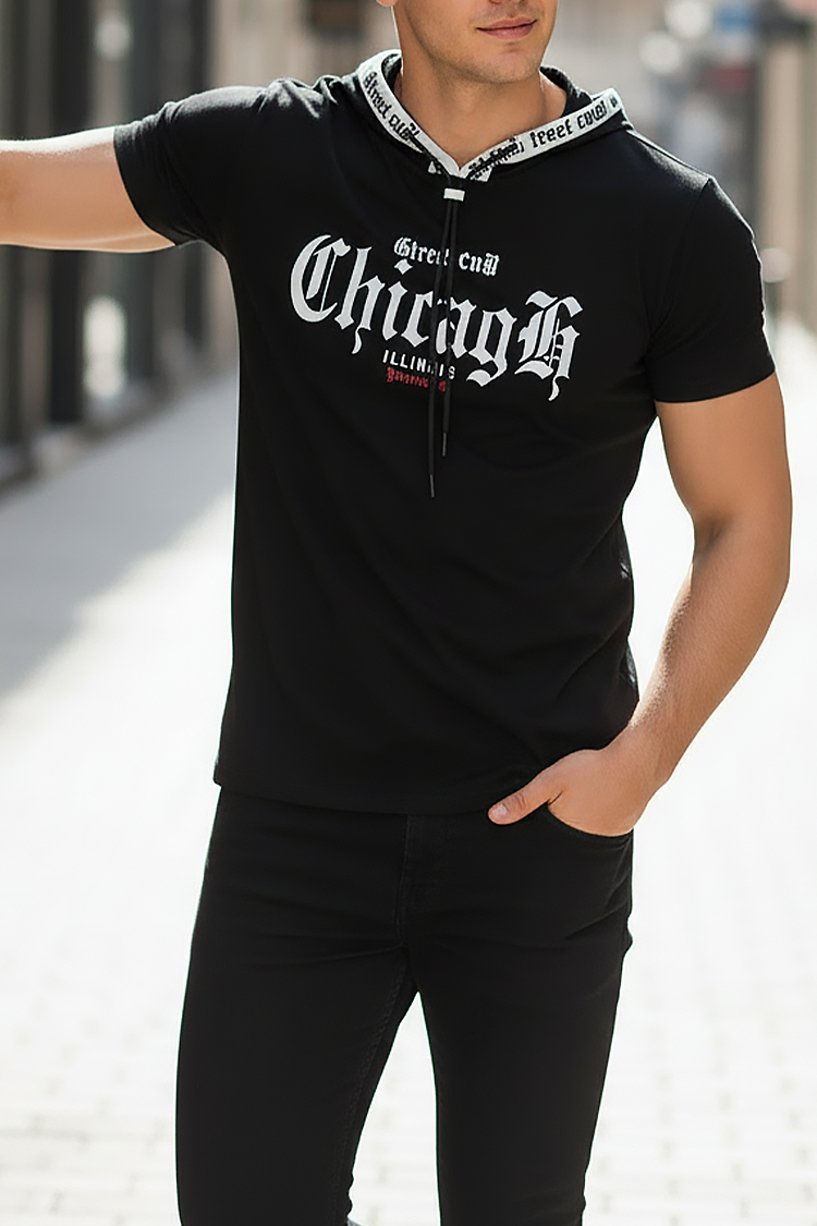 - Trendi férfi póló kényelmes szabással, húzózsinóros kapucnival és mintával, amely alkalmas mindennapi életre, sétákra vagy sportos megjelenés kiegészítéseként.
