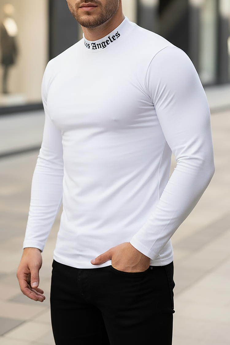 - Aktuális modellű férfi felső szűk szabással, fehér színben, nyomtatott gallérral.