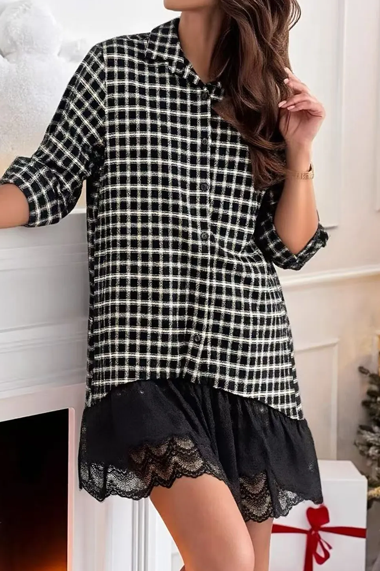 - A modell kényelmes szabással, gombos nyakkivágással és látványos, kockás mintával rendelkezik.