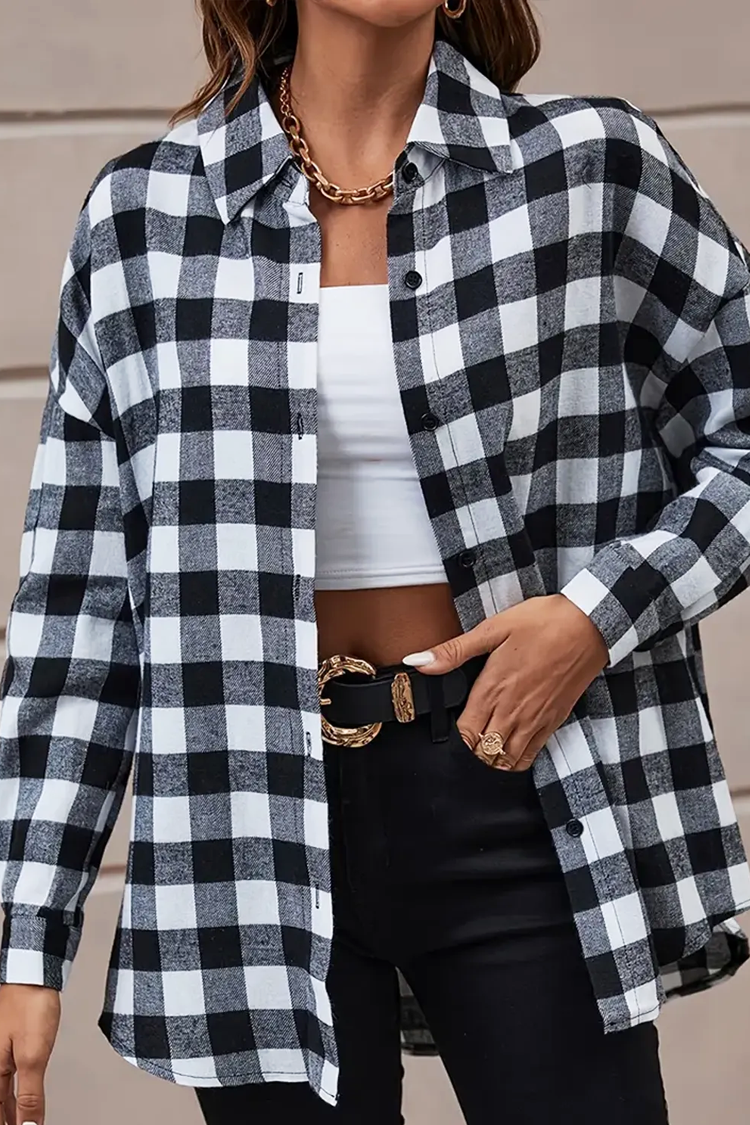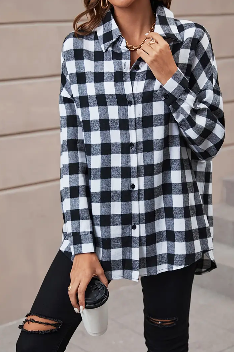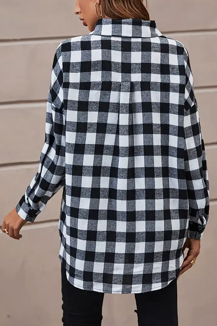 - A modell kockás mintázatú, standard gombos rögzítésű és klasszikus szabású.