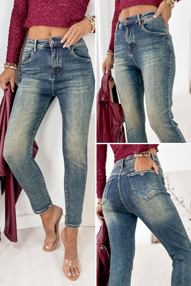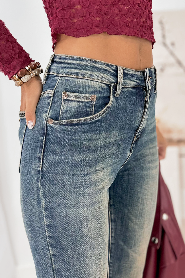 - A középmagas derék tökéletes illeszkedést biztosít. A modell cipzárral és gombbal záródik.