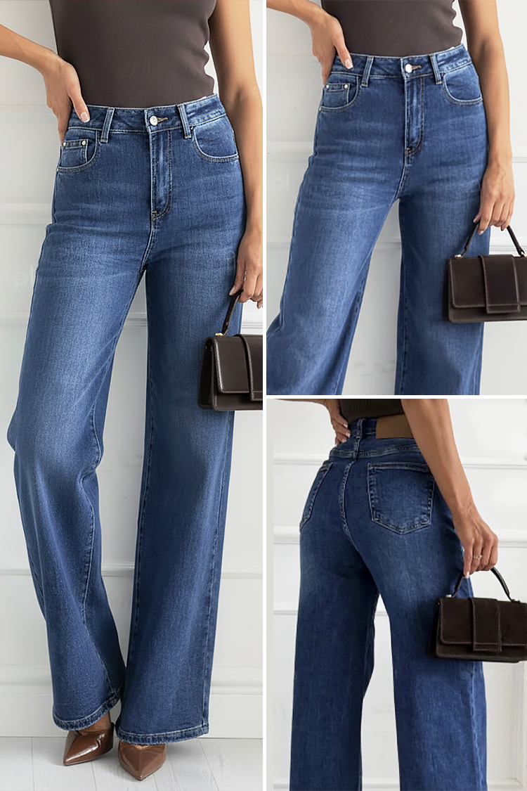 - A modell magas derekú, széles szárú, divatos dizájnnal és fakó hatású.