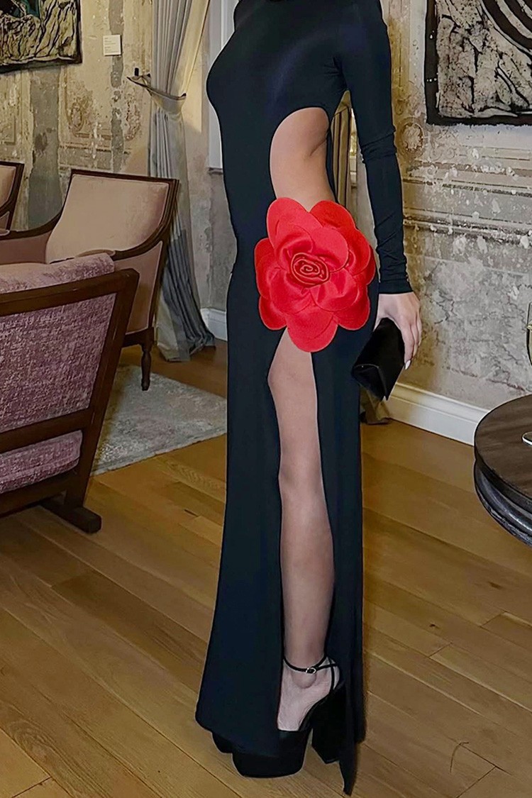 - A modell szexi sliccel, látványos, díszes virággal és kerek nyakkivágással rendelkezik.