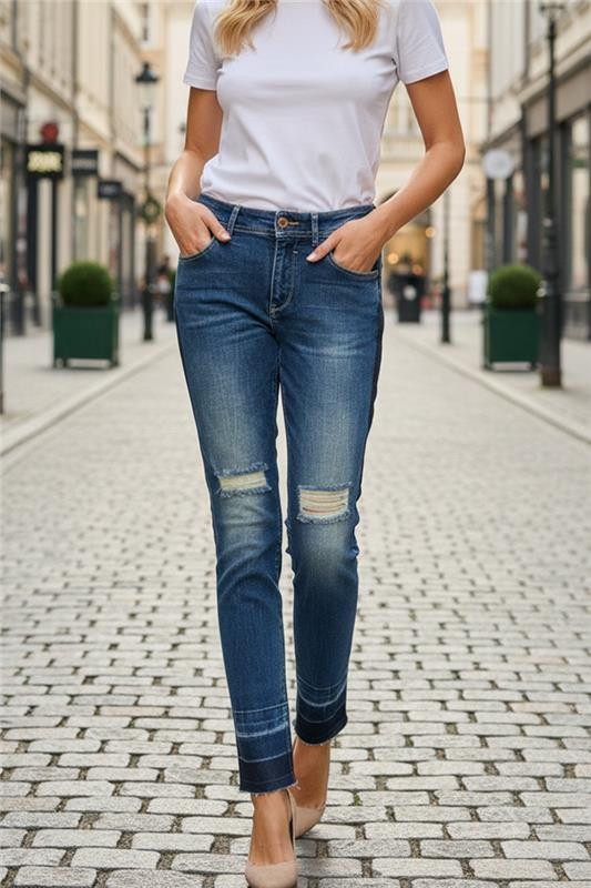- Basic modellű női farmer vonzó dizájnnal, amely alkalmas mindennapi viseletnek vagy szabadidőre.