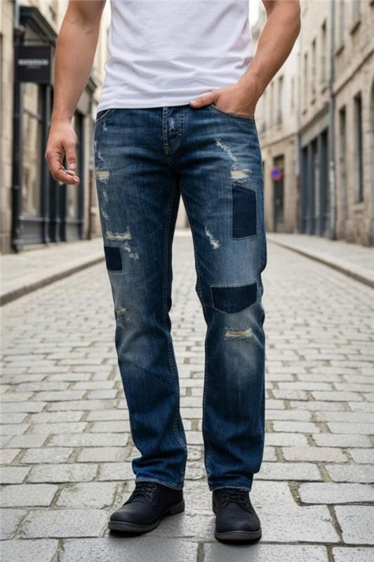 - Praktikus farmer díszes szakadásokkal és horzsolásokkal a száron, mindennapi viseletnek alkalmas.