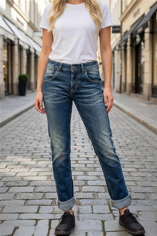 - Basic modellű női farmer kék színben, koptatott hatással, mindennapi viseletre vagy szabadidőre is alkalmas.
