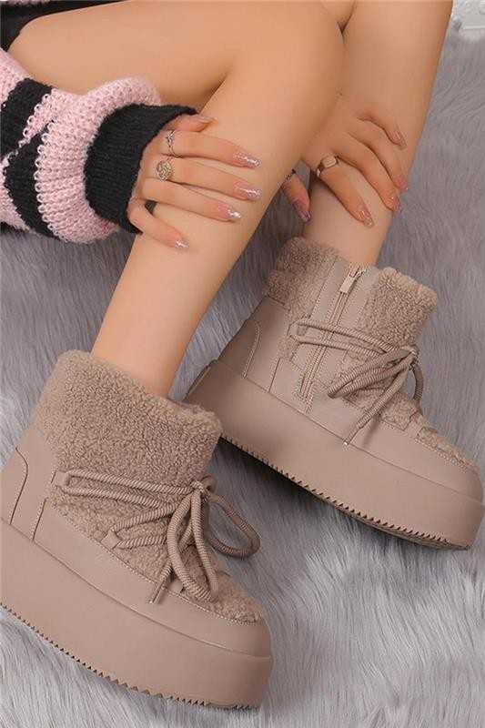 - Meleg női hótaposó vízálló anyagból, bolyhos öko szőrmével díszítve, barna színben.