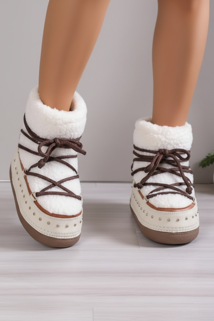 - Meleg női hótaposó vízálló anyagból, fehér színű, bolyhos öko szőrmével díszítve.