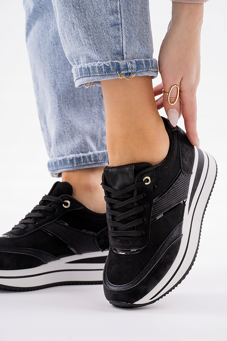- Letisztult és sportos dizájnú női sportcipő kontrasztos fehér platformmal, mindennapi viseletre.