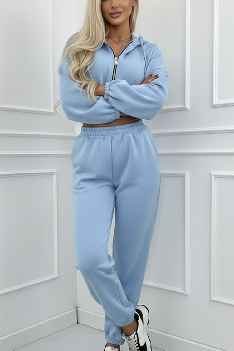 - Női kétrészes sportos szett trendi dizájnnal, világoskék színben.