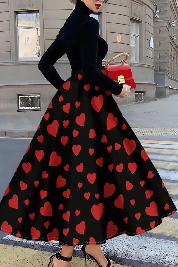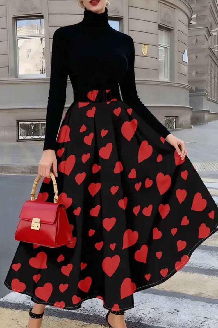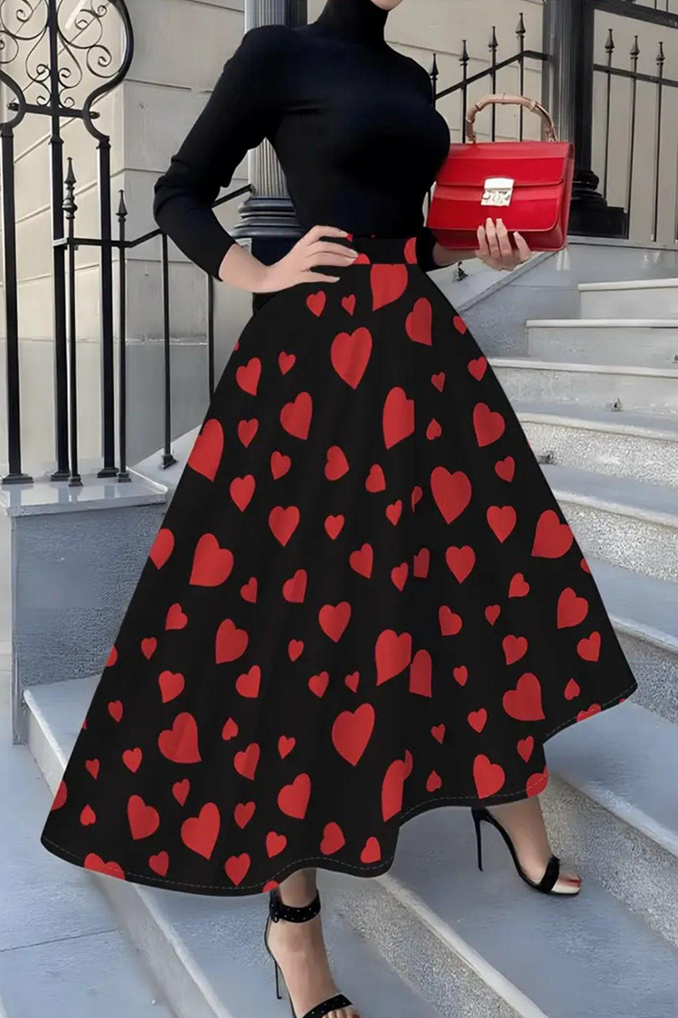 - A modell magas derekú, fekete színű, vonzó szabású, látványos szívmintás.