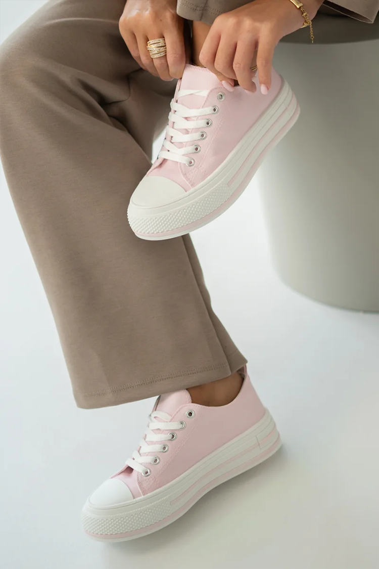 - Női tornacipő púder szinű textilből, fűzős és platformos, mindennapi viseletre alkalmas.