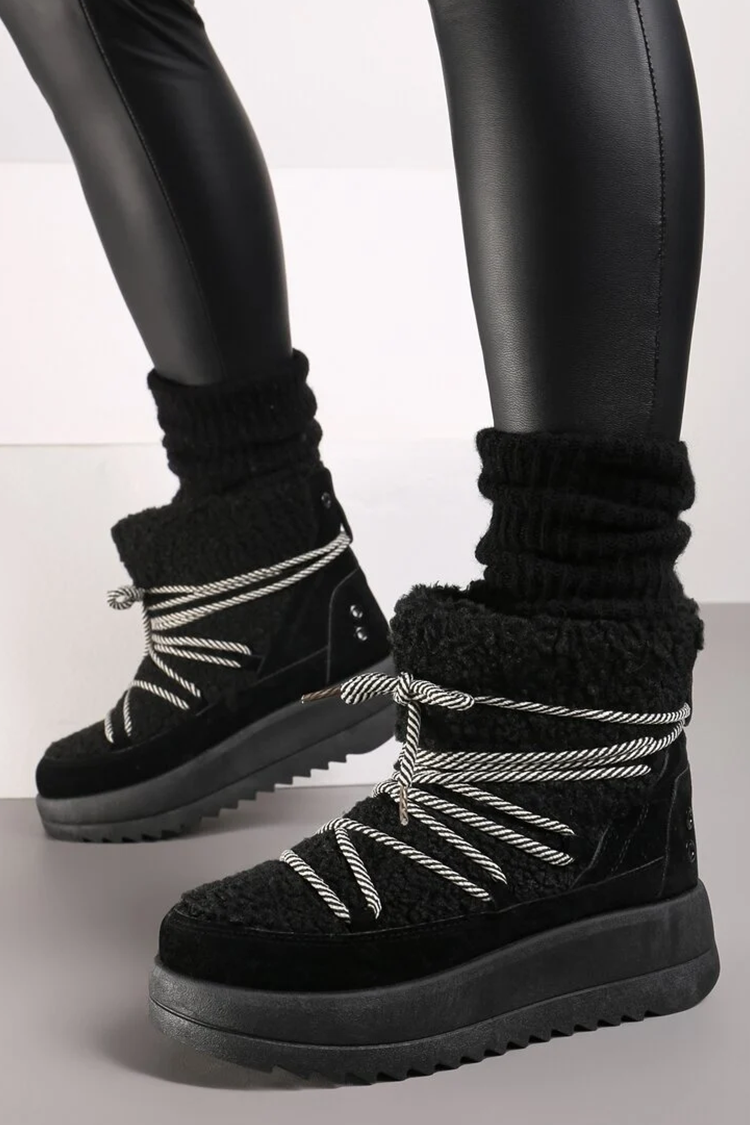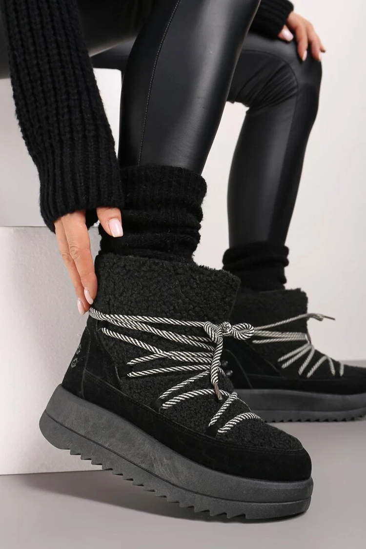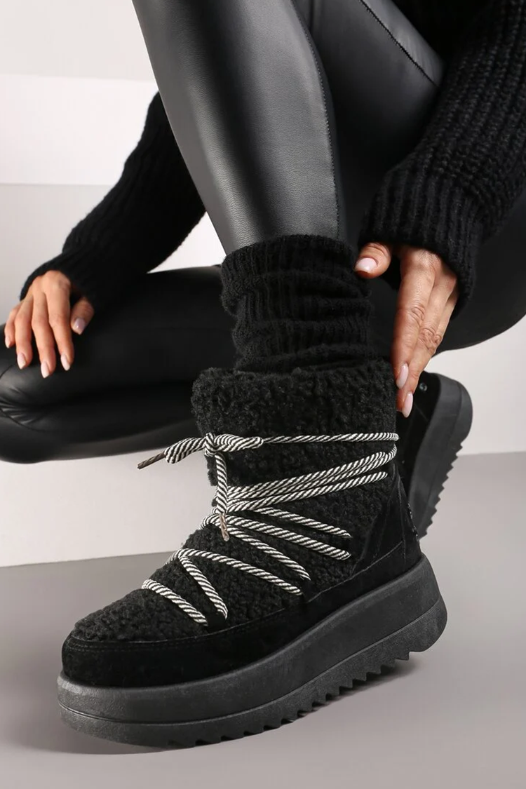 - Meleg női hótaposó vízálló anyagból, fekete színű, bolyhos öko szőrmével díszítve.