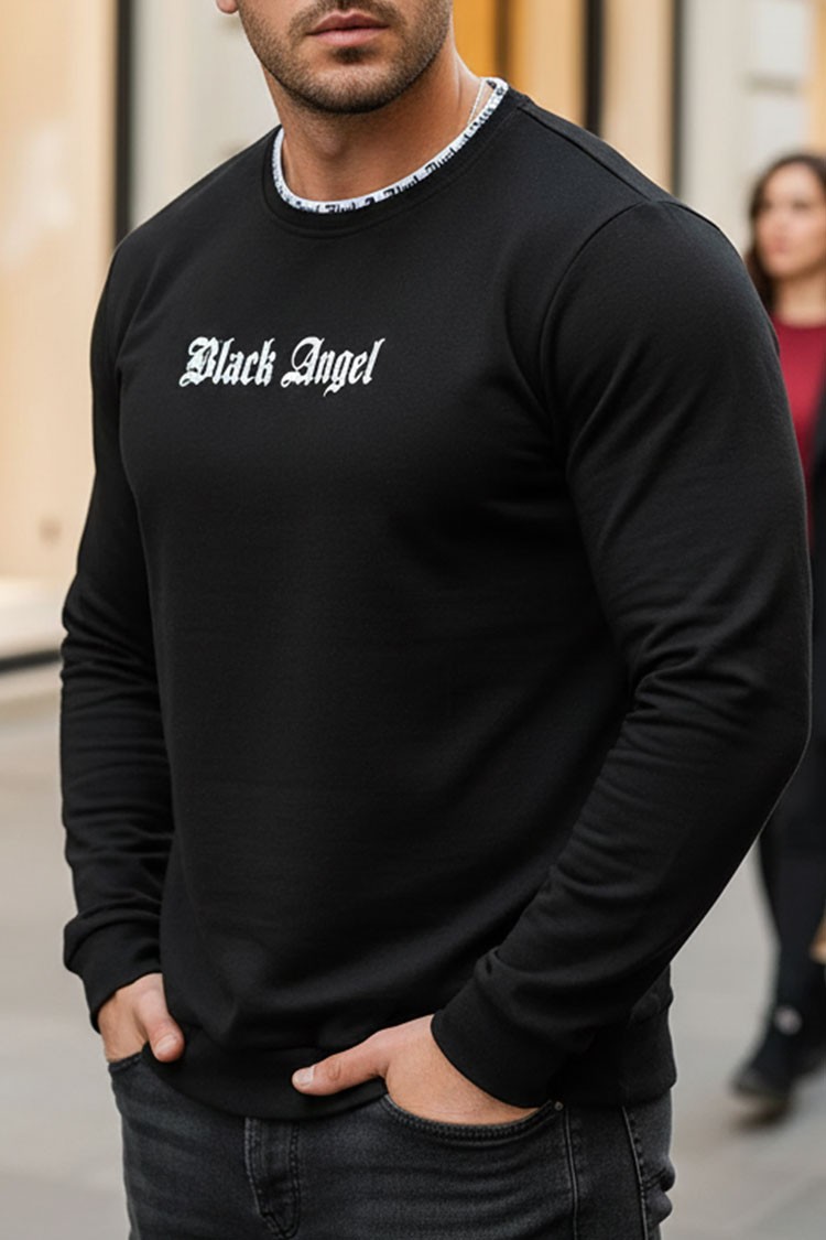 - Praktikus férfi felső fekete színben, klasszikus gótikus Black Angel betűtípussal és hosszú ujjal.